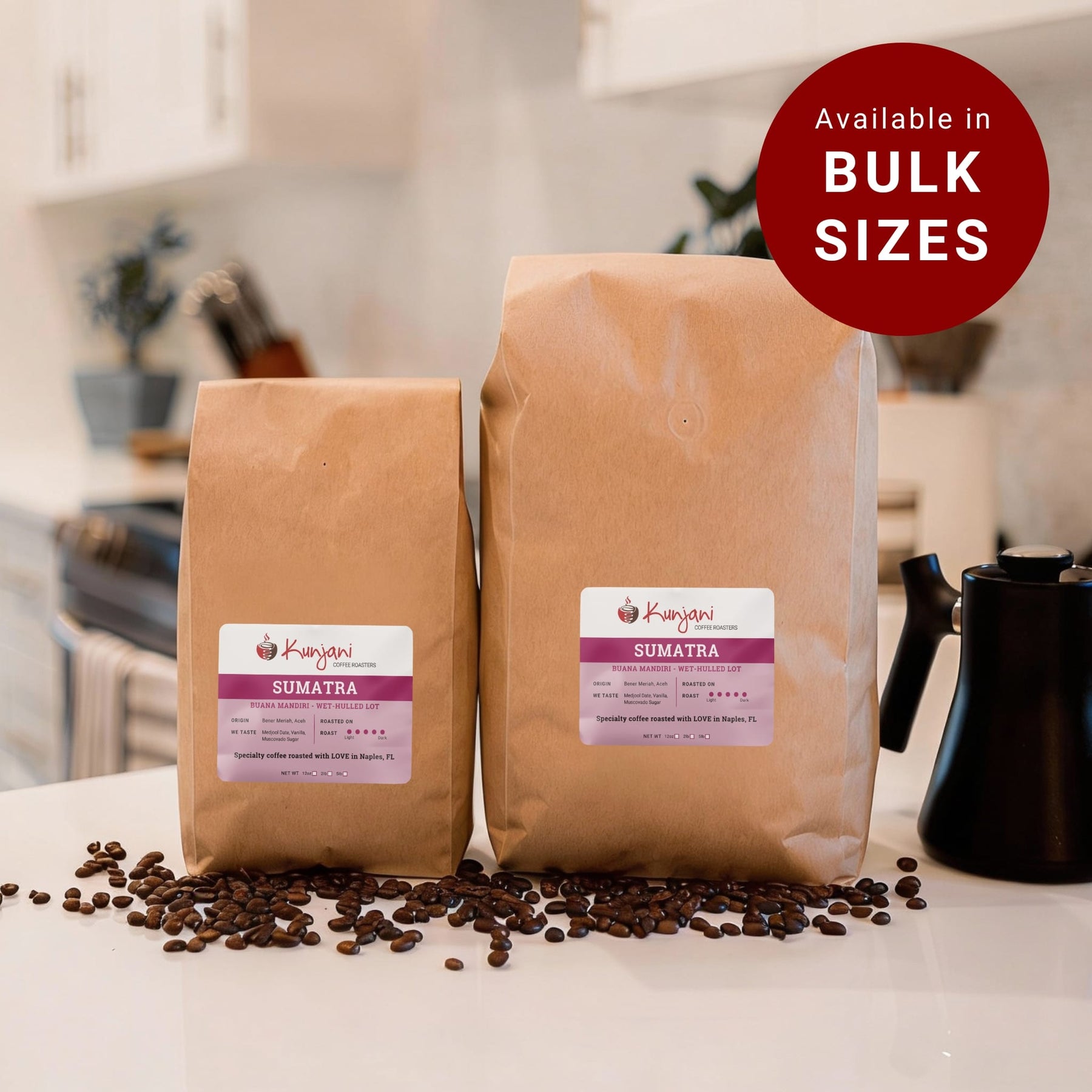 We roast this coffee to a dark level to emphasize its full body, earthy richness, and deep sweetness.